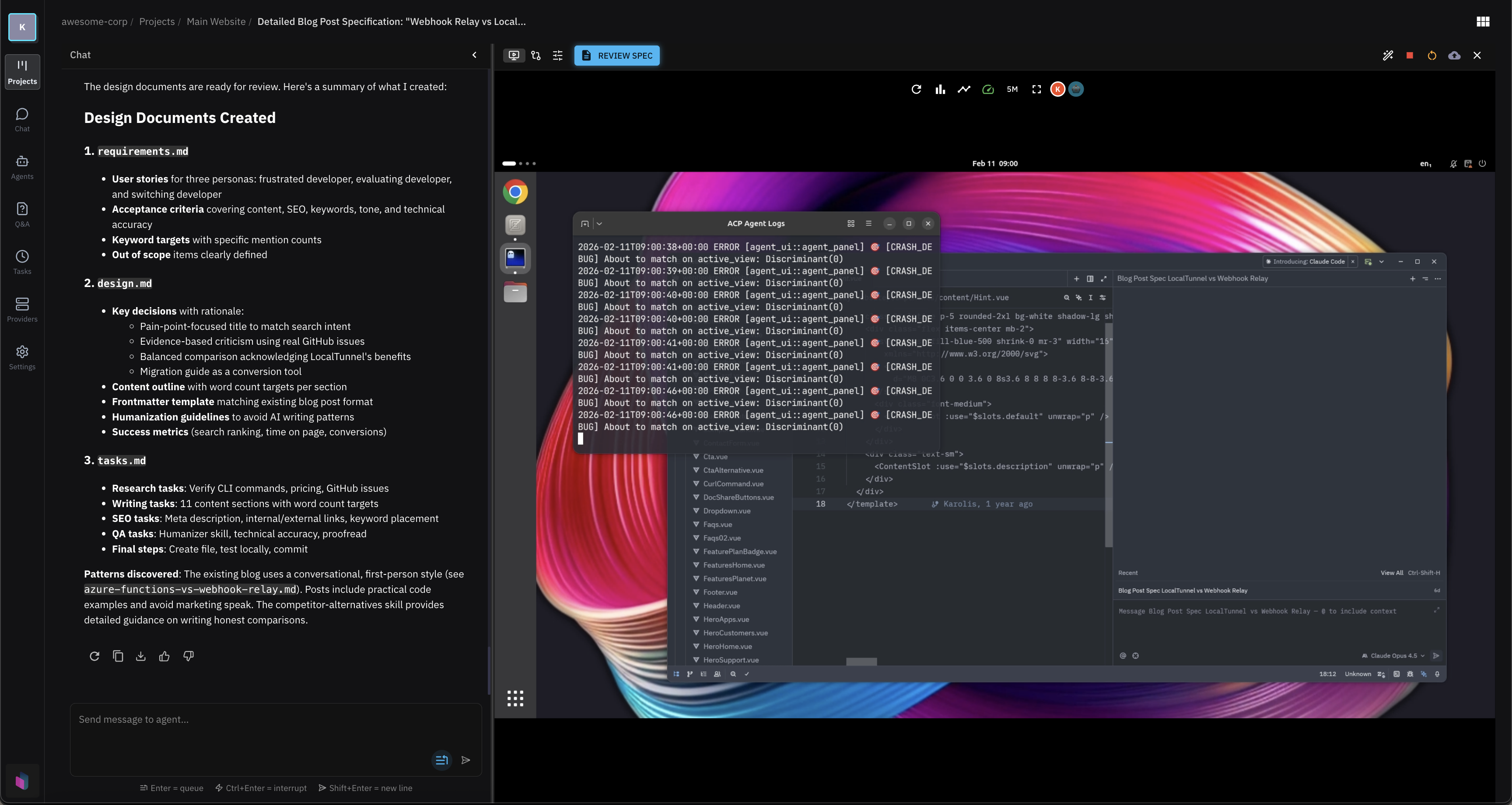 Projects and spec tasks are the core of Helix ML. This is how work is planned and executed.